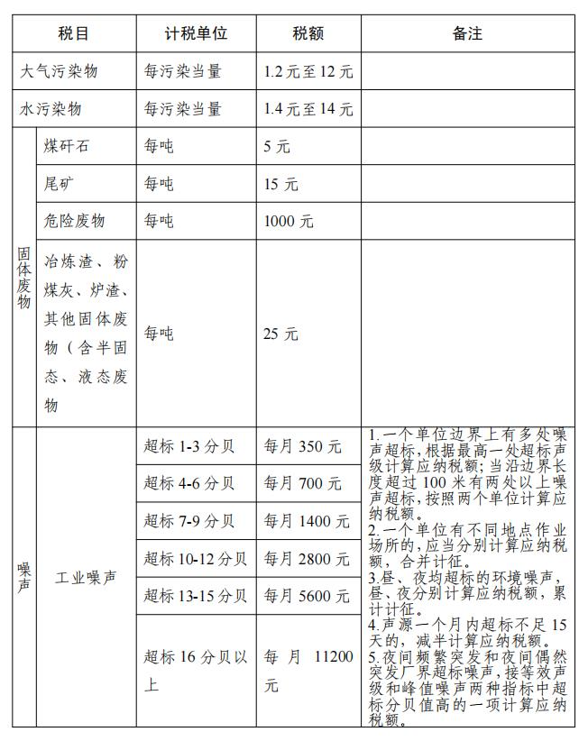 第六条 环境保护税的税目、税额,依照本法所附《环境保护税税目税额表》执行。